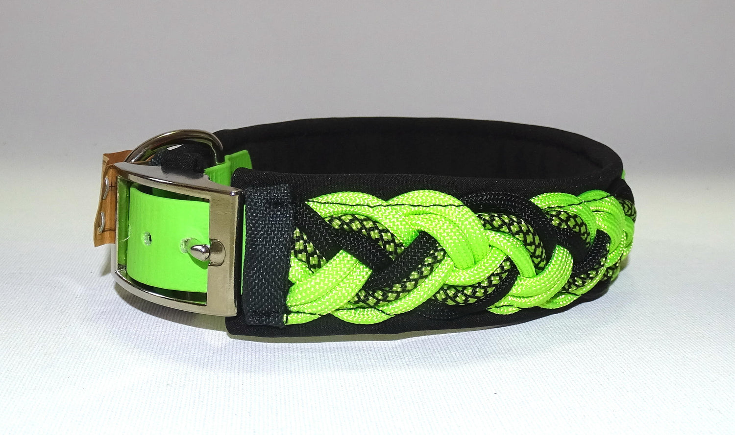 Paracordhalsband gepolstert Schwarz-Neon Grün