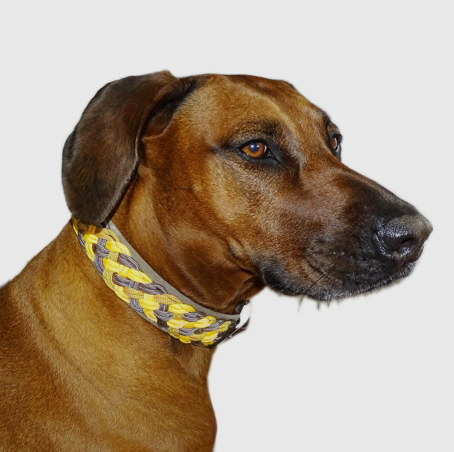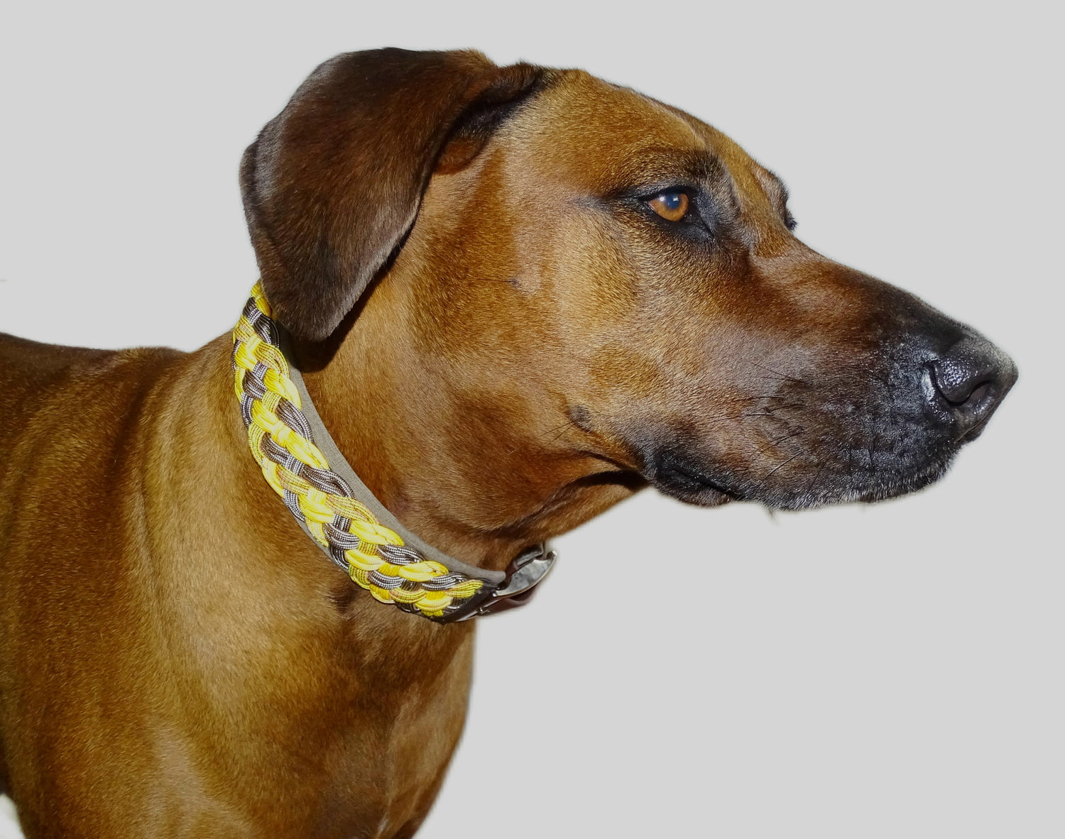 ab 36 cm Halsumfang in der Breite 40 mm gefertigt aus Paracord und Softshell.